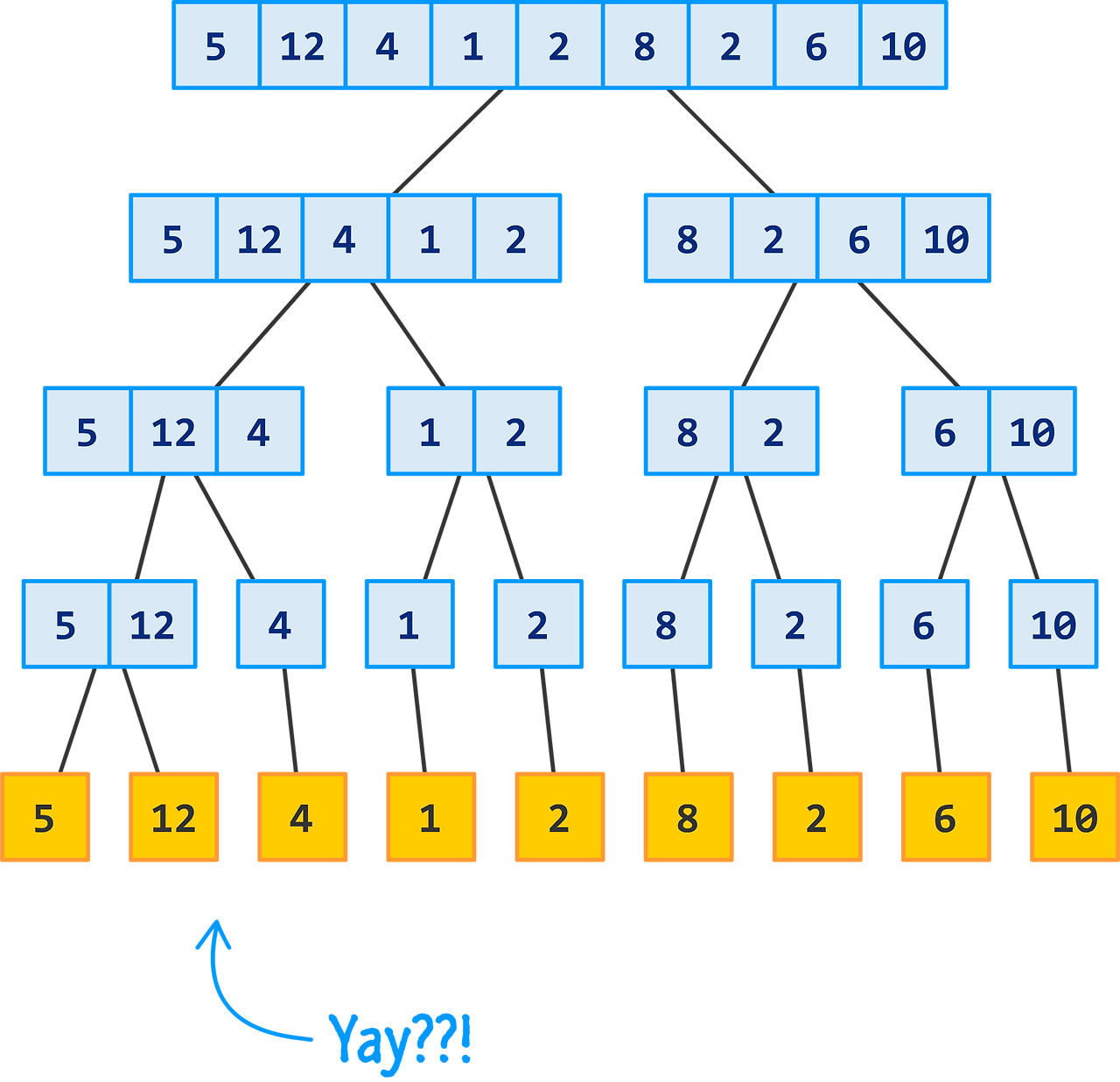 → 배열의 한 원소만 남았다는 뜻이므로 이때는 아무 작업도 하지 않고 그대로 반환한다.